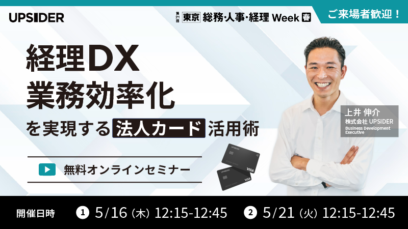 本ウェビナーでは法人カード『UPSIDER』の機能紹介や活用方法を解説しながら最新の活用事例についてお話いたします。