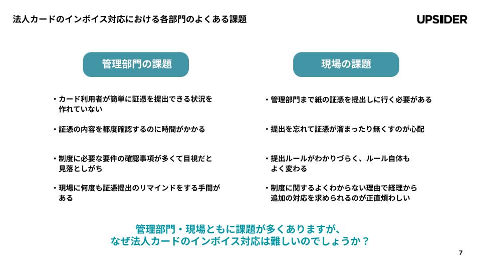 請求書のインボイス対応は進んだものの法人カードの方のインボイス対応が進んでいない…証憑の回収が煩わしく確認業務にも手間がかかる…そんな法人カードのインボイス対応に関する課題や要因をまとめ、制度対応に最適な法人カードのあり方について解説しています。